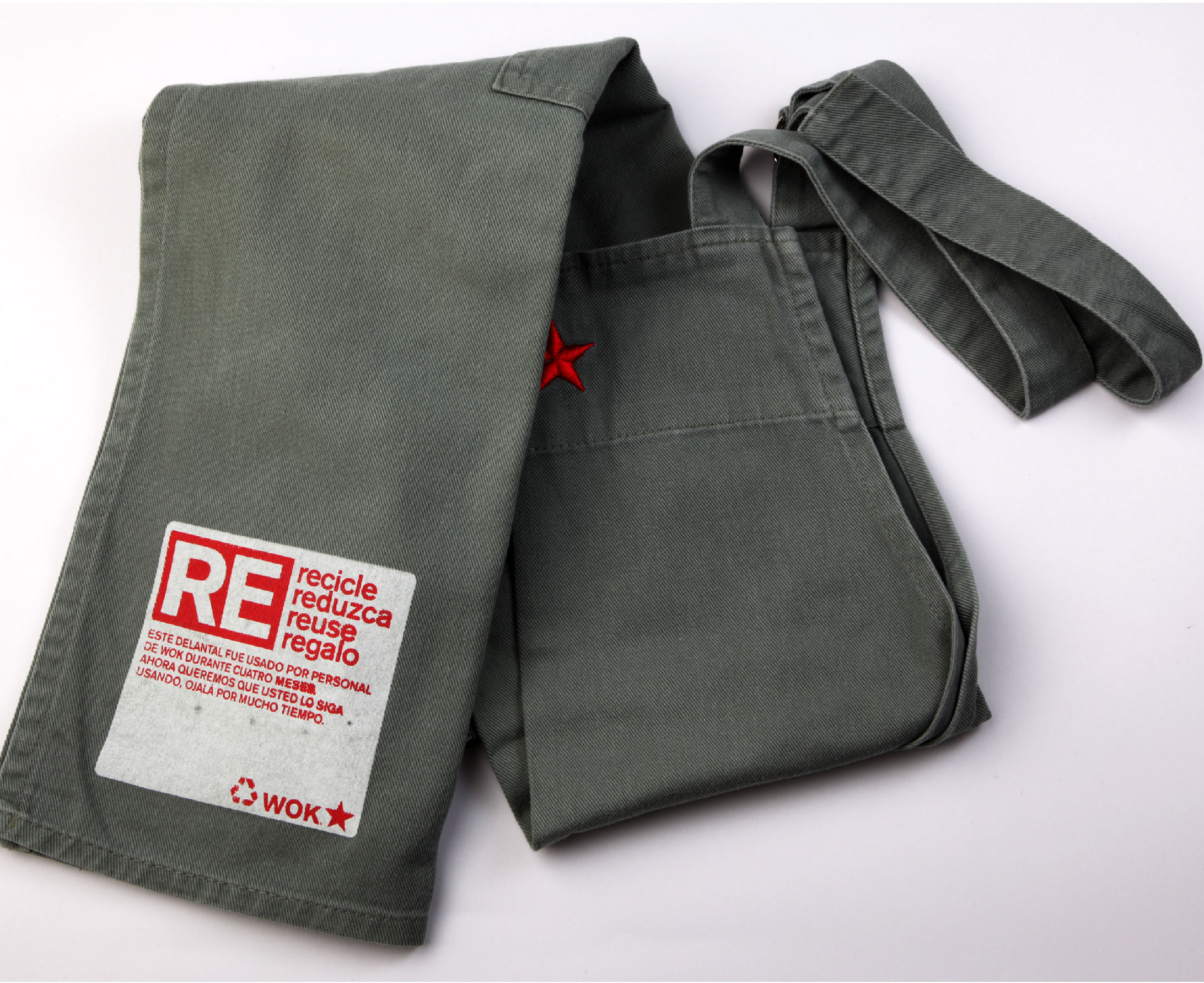 Este delantal fue usado en Wok durante algunos meses. Ahora esperamos que usted lo siga usando, ojalá por mucho más tiempo.